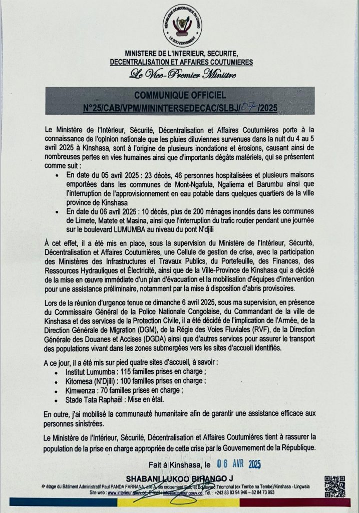 Le Gouvernement de la RDC et l’AFC/M23 s’engagent à libérer de prisonniers endéans 10 jours18 avril 2026