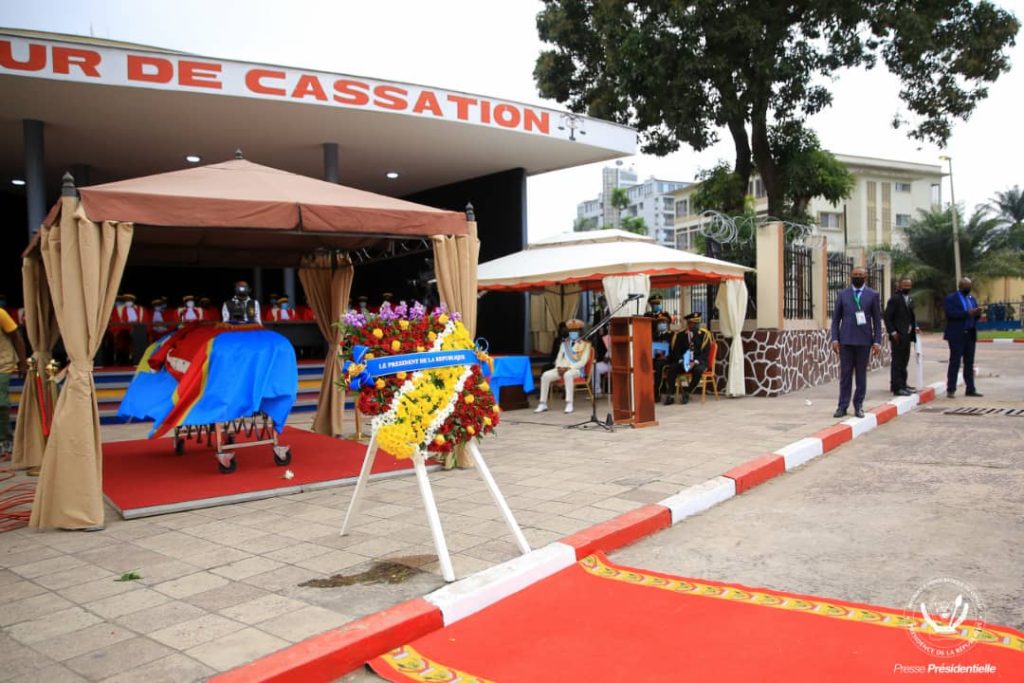Après l’avoir admis par ordonnance à l’ordre national des Héros nationaux Kabila-Lumumba au grade de Commandeur, le Chef de l’État Félix-Antoine TSHISEKEDI TSHILOMBO s’est incliné devant la dépouille mortelle de l’illustre disparu, exposée devant le parvis de la Cour de Cassation pour une audience solennelle de cette juridiction.