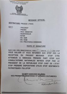 Le Vice-Premier Ministre, Ministre de l’Intérieur et des affaires coutumières , Gilbert Kankonde Malamba a, dans un communiqué publié ce mardi 10 novembre 2020, obligé les Gouverneurs de province à prendre part aux consultations nationales initiées par le Chef de l’Etat, Félix-Antoine Tshisekedi Tshilombo, à Kinshasa.