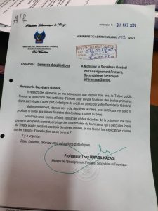 « Il ressort des éléments en ma possession que, depuis trois ans, le trésor public finance la production des certificats d’études pour élèves finalistes des écoles primaires d’une part et que d’autre part, la ligne de crédit est gérée par votre secrétariat général », pouvons-nous lire dans ladite missive.