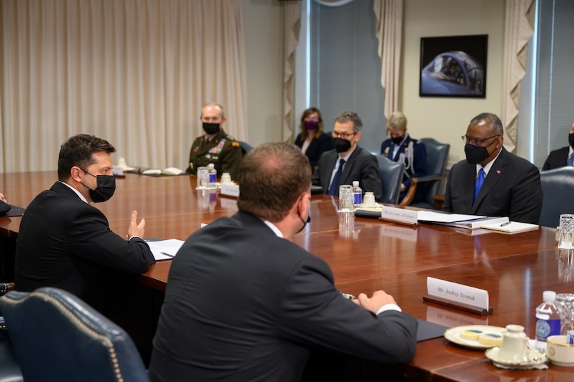 Le secrétaire à la Défense des États-Unis, Lloyd J. Austin III a reçu pour des entretiens, le président ukrainien Volodymyr Zelenskyy et son ministre de la Défense Andrii Taran , ce mardi 31 août 2021 au Pentagone.
