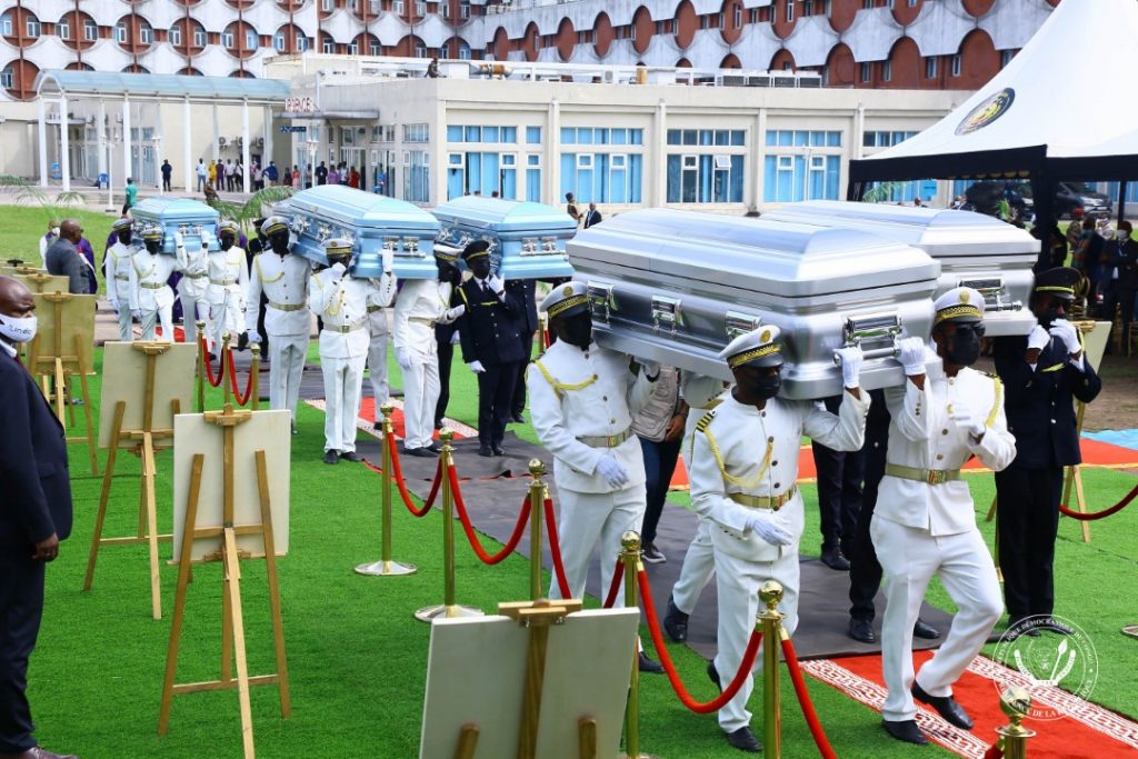 8 cercueils contenant les reliques des membres de la famille Ntumba Katala, Chef du protocole à la maison civile du Chef de l’État étaient exposés au funérarium pour un dernier hommage avant leur inhumation.