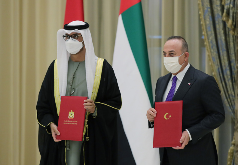 Le ministre turc des Affaires étrangères Mevlüt Çavuşoğlu et le ministre émirati de la Santé et de la Prévention Abdul Rahman bin Mohammed Al Owais ont signé le protocole d’accord sur la coopération dans le domaine de la santé et des sciences médicales entre le gouvernement de la République de Turquie et le gouvernement des Émirats arabes unis.