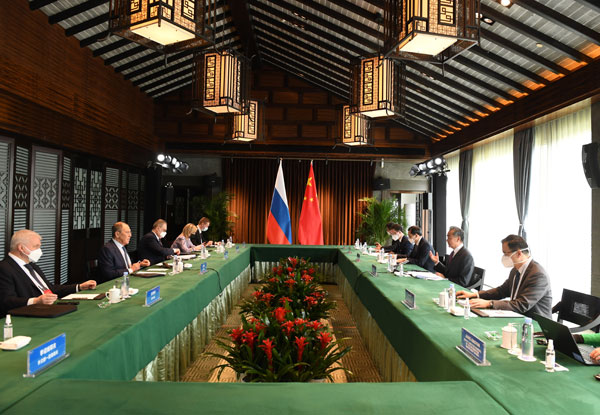Pour sa part, Serguei Lavrov a déclaré qu’à un moment critique de l’évolution de la situation internationale, les chefs d’Etat russe et chinois avaient maintenu une communication stratégique et joué un rôle important dans la promotion du développement régulier des relations russo-chinoises et dans la promotion de la multipolarisation mondiale. La partie russe est disposée à travailler avec la partie chinoise pour mettre en œuvre l’important consensus atteint par les deux chefs d’Etat, continuer à renforcer la coordination stratégique de haut niveau et approfondir la coopération mutuellement bénéfique dans divers domaines. Dans le même temps, sur la scène internationale et multilatérale, promouvoir activement le processus de multipolarisation, s’opposer à l’hégémonisme et à la politique de puissance, et défendre les buts et principes de la Charte des Nations Unies.