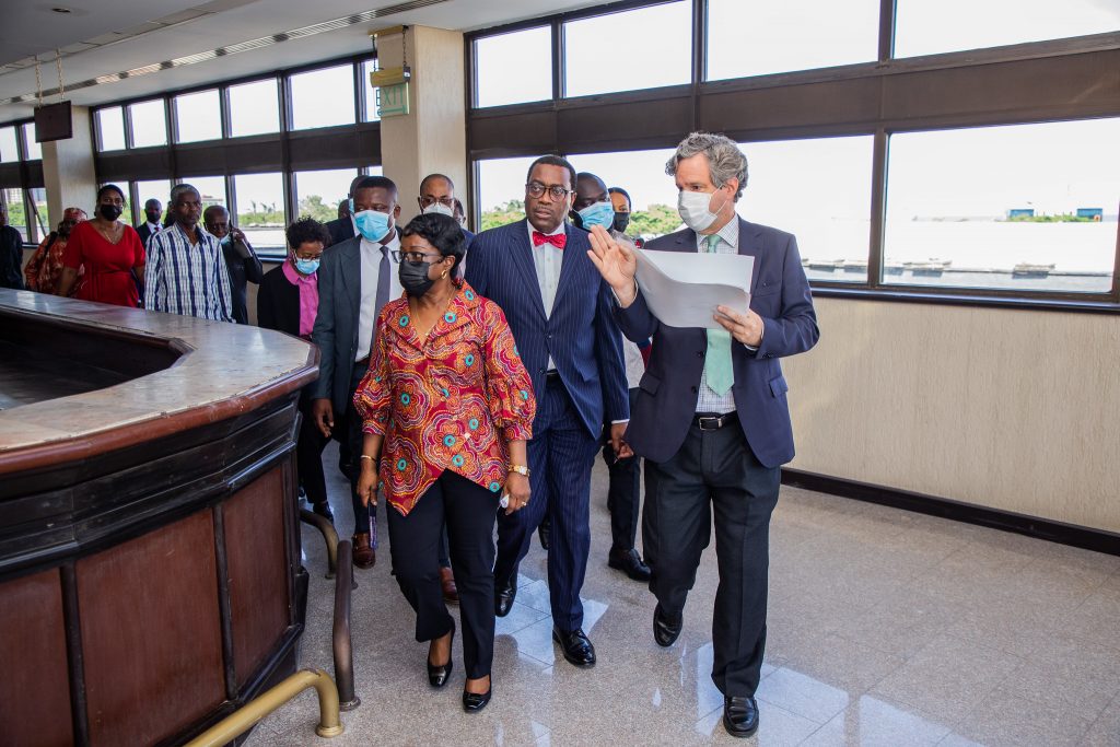 M. Adesina est en visite au Ghana en amont des assemblées annuelles 2022 du Groupe de la Banque africaine de développement qui se tiendront à Accra du 23 au 27 mai. Dans le cadre de cette mission préparatoire, il est accompagné dans la capitale ghanéenne par Vincent Nmehielle, secrétaire général du Groupe de la Banque, Kevin Urama, économiste en chef par intérim et vice-président chargé de la gouvernance économique et de la gestion des connaissances, Alex Mubiru, directeur général du cabinet du président, Kenyeh Barlay, administrateur représentant la Gambie, le Ghana, le Liberia, la Sierra Leone et le Soudan, et Eyerusalem Fasika, cheffe du bureau-pays pour le Ghana du Groupe de la Banque.