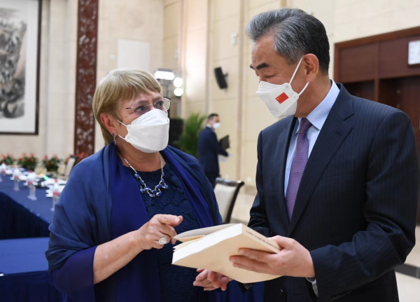 Wang Yi s’est félicité de la première visite de Bachelet en Chine en tant que Haut-Commissaire des Nations Unies aux droits de l’homme, affirmant que c’était la première fois que la Chine recevait le Haut-Commissaire aux droits de l’homme en visite en Chine après 17 ans, ce qui revêt une importance symbolique pour les deux parties. On espère que cette visite est un voyage pour améliorer la compréhension, renforcer la coopération, et aussi un voyage pour nettoyer la source.