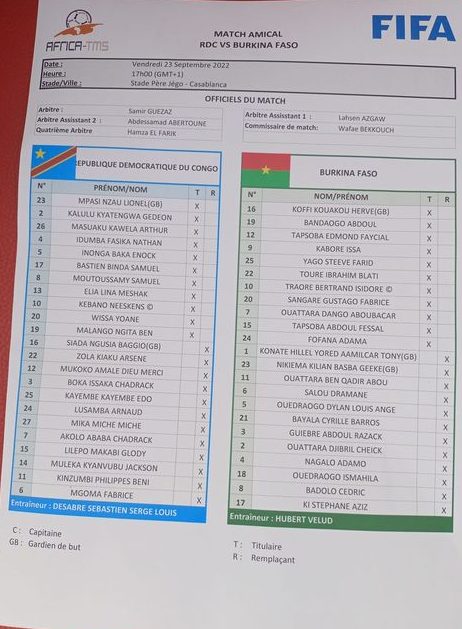 La République Démocratique du Congo affronte le Burkina Faso en amical international, ce vendredi 23 septembre, dans la soirée au stade Père Jergo à Casablanca au Maroc.