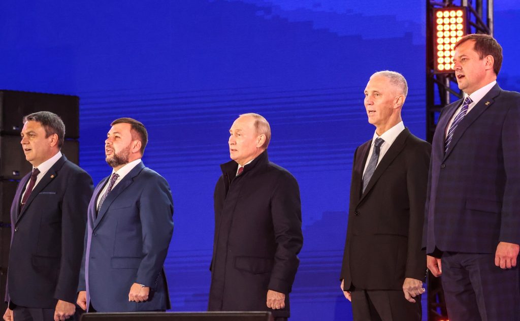 En présence du peuple russe et du chef de la République populaire de Lougansk Leonid Pasechnik, chef de la République populaire de Donetsk Denis Pushilin, chef de la région de Kherson Vladimir Saldo et chef de la région de Zaporozhye Yevgeny Balitsky, Vladimir Poutine a, au cours de son discours, rendu hommage aux soldats et officiers héroïques, à la milice du Donbass, aux volontaires russes, qui ont combattu depuis le 24 février 2022, pour arriver à ce résultat.