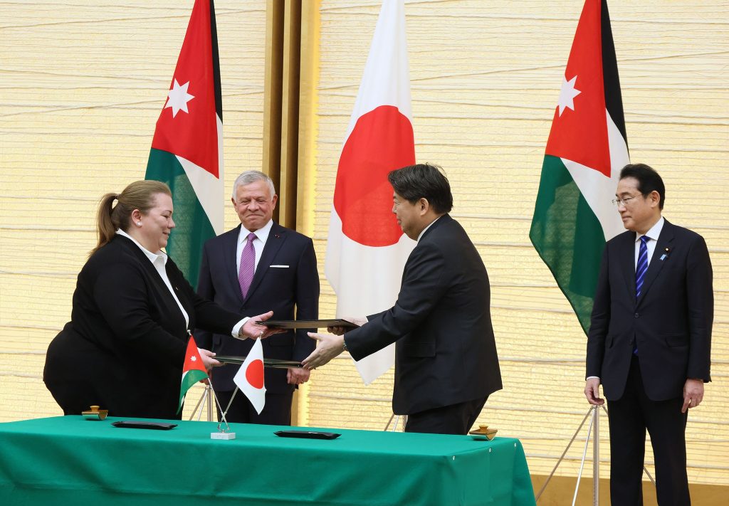 Au terme de cette réunion, les deux dirigeants ont assisté à la cérémonie de signature du don de 713 millions de yens du Japon à la Jordanie pour le « Programme de développement économique et social » (fourniture d’équipements pour les installations à construire dans le cadre du programme de dessalement et de désalinisation de l’eau d’Aqaba Amman), projet de transport.