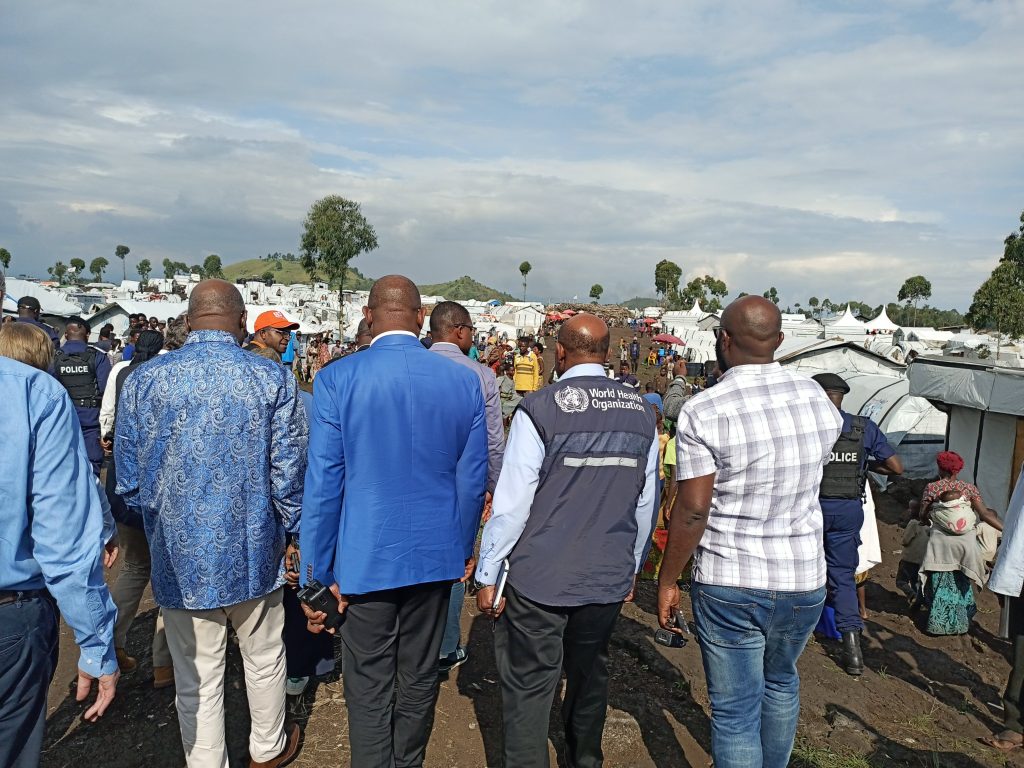 Après des explications reçues du Gouverneur, la délégation est descendue dans les sites de déplacés de Bulengo, plus à l’ouest de la ville de Goma avant de chuter par le camp de Rusayo, situé au pied du Nyiragongo. Dans ces deux sites, la délégation a été témoin des conditions dans lesquelles vivent ces hommes, femmes et enfants poussés loin de leurs milieux de vie à la suite de la barbarie humaine.