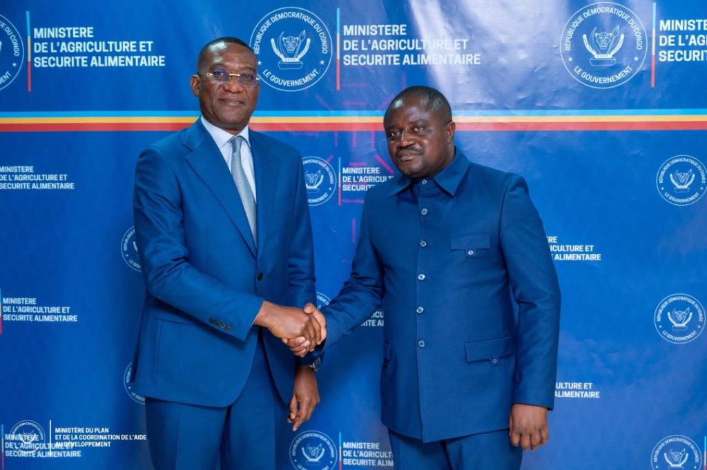 Les ministres d’État Guylain Nyembo (Plan et Affaires du développement) et Muhindo Nzangi (Agriculture et Sécurité alimentaire) se sont rencontrés ce lundi 13 octobre 2025, pour présenter les grandes lignes des réformes visant à moderniser le secteur agricole en République démocratique du Congo.
