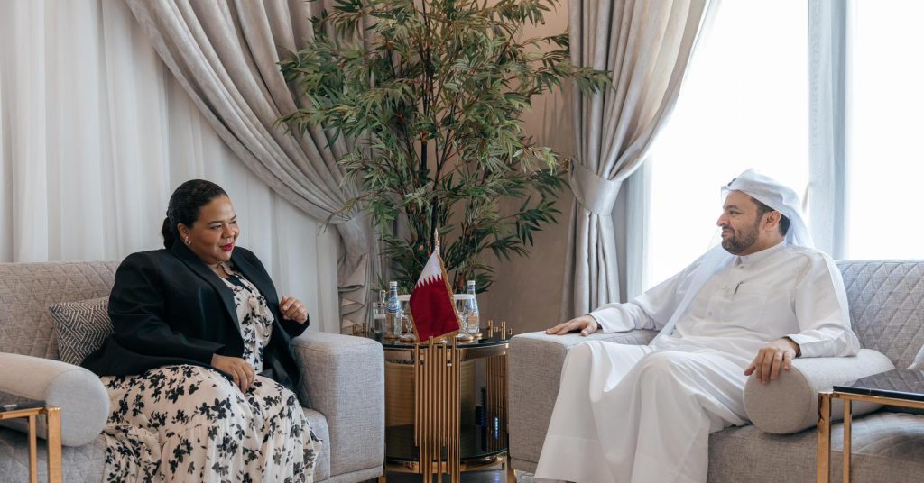 La Ministre d’État, Ministre des Affaires étrangères de la République Démocratique du Congo, Thérèse Kayikwamba Wagner, a été reçue ce dimanche 2 novembre 2025, par Son Excellence Dr Mohammed bin Abdulaziz bin Saleh Al Khulaifi, Ministre d’État aux Affaires étrangères du Qatar.