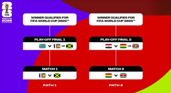 Les équipes concernées – RD Congo, Nouvelle-Calédonie, Jamaïque, Bolivie, Suriname et Irak – représentent cinq confédérations différentes et connaissent désormais leur parcours pour tenter de rejoindre les 48 nations qualifiées pour la compétition.