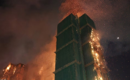 Le feu s’est déclaré dans le complexe résidentiel Wang Fuk Court, qui compte près de 2 000 appartements répartis sur huit blocs.