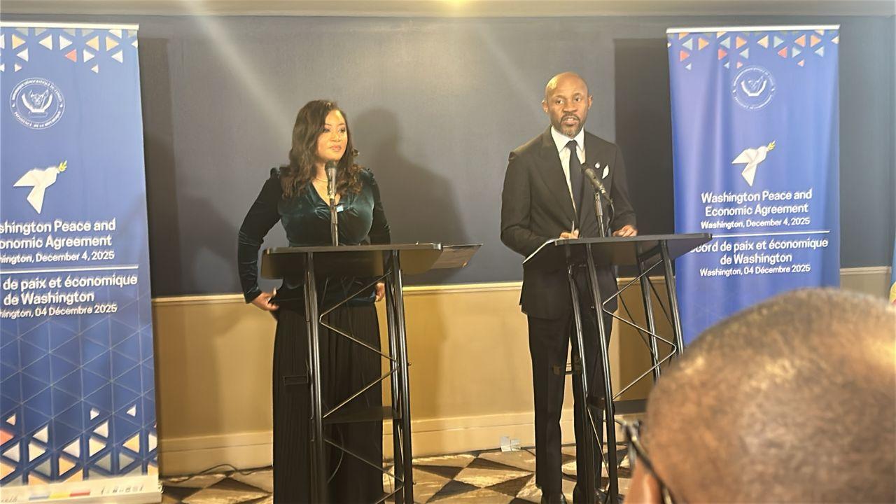 À la veille de la signature d’un accord de paix décisif entre la République Démocratique du Congo et le Rwanda, le ministre de la Communication et des Médias, Patrick Muyaya, et la porte-parole du chef de l’État, Tina Salama, ont présenté un briefing spécial depuis Washington.