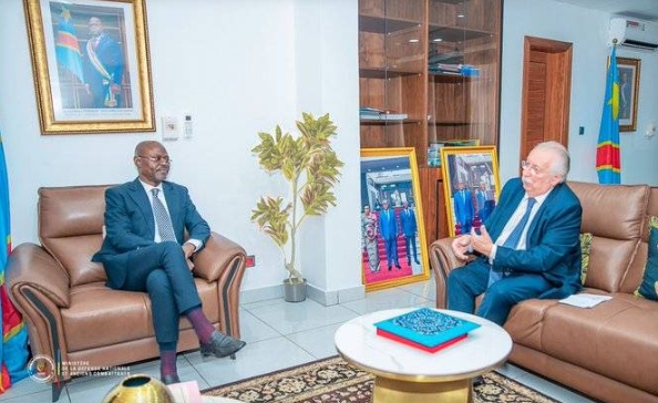 Le Vice-Premier Ministre, Ministre de la Défense nationale et Anciens Combattants, S.E. Me Guy Kabombo Muadiamvita, a reçu dans son cabinet ce vendredi 19 décembre 2025, S.E.M André Flahaut, ancien ministre fédéral de la Défense du Royaume de Belgique, pour une visite de courtoisie.