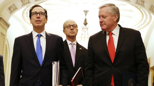 Les discussions finales ont eu lieu entre McConnell, Schumer, le secrétaire au Trésor Steven Mnuchin , le directeur des affaires législatives de la Maison Blanche Eric Ueland et le nouveau chef de cabinet de la Maison Blanche Mark Meadows .
